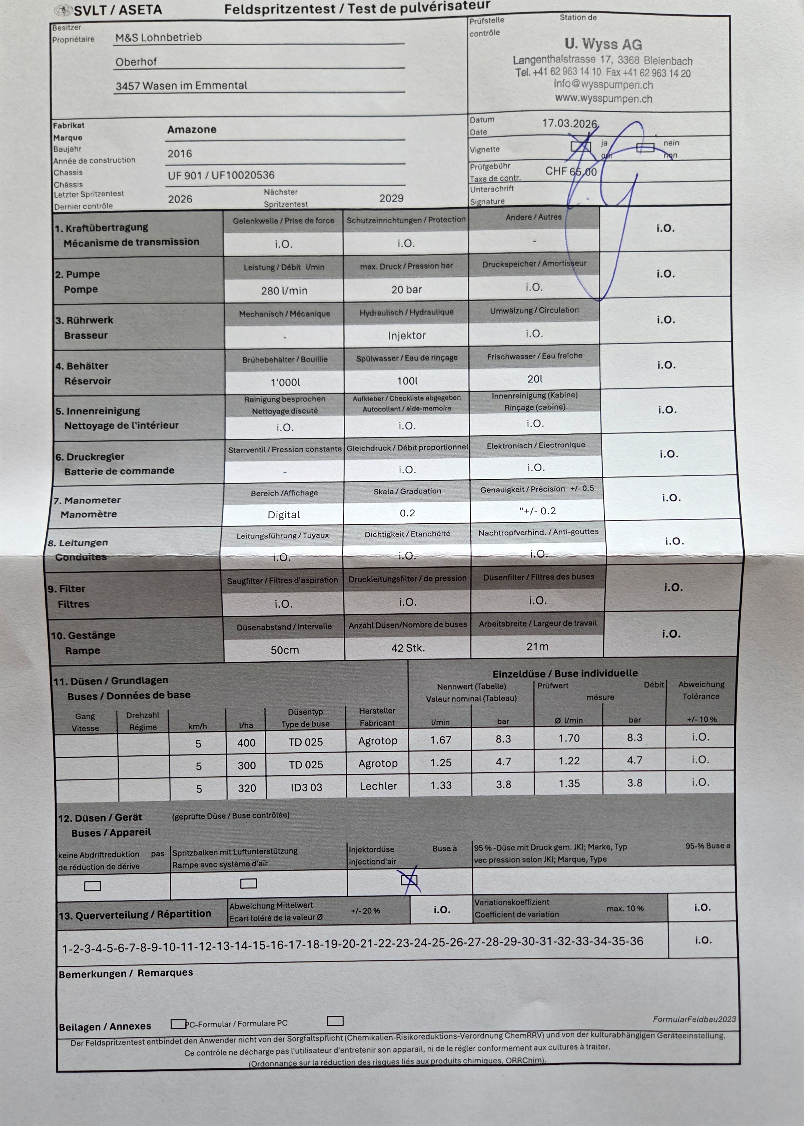 Mit der Feldspritze Amazone UF 901 können wir Ihren Pflanzenschutz sowie die Flüssigdüngung aller Kulturen vornehmen. Mit der Geschwindigkeitsabhängigen Ausbringung und 13 Teilbreiten mit Section Controll ist eine exakte Ausbringung garantiert. Die Pflanzenschutzspritze können wir auf 21/18/15/12 Meter klappen.